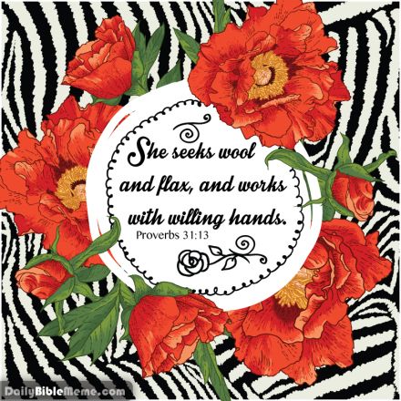 "She selects wool and flax and works with eager hands" Prov. 31:13